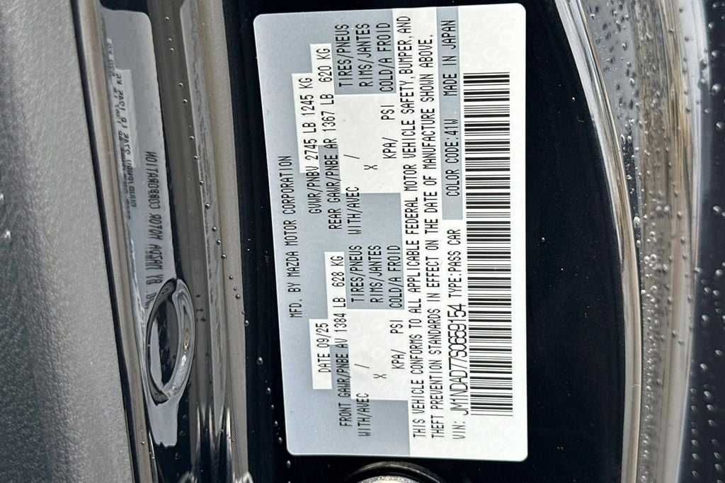 Jet Black Mica 2025 Mazda MX-5 Miata Grand Touring RWD 6-Speed Manual 2.0L 4-Cylinder DOHC 16V