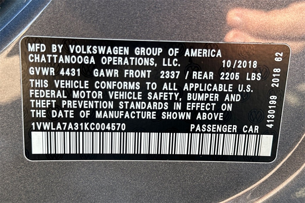 Platinum Gray Metallic 2019 Volkswagen Passat 2.0T Wolfsburg FWD.